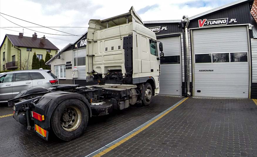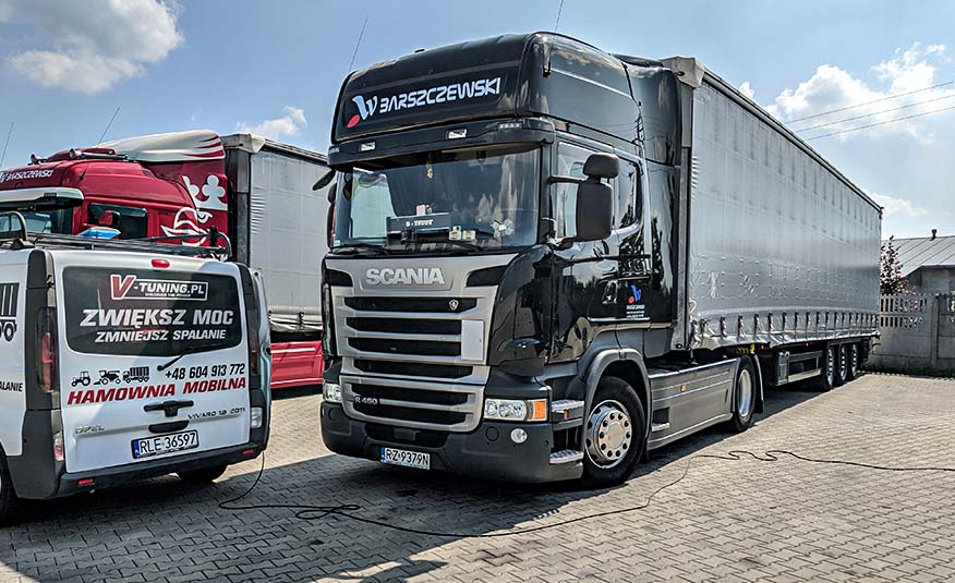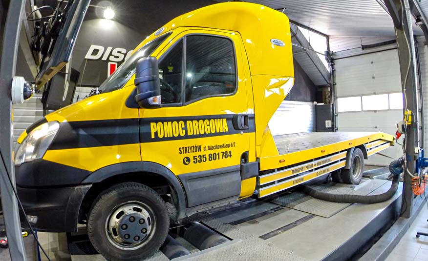K dispozícii máme plne vybavené technické vozidlo s kompletnou súpravou nástrojov a softvéru, ktoré nám umožňuje vykonávať úpravy nákladných vozidiel na území celého Poľska, Slovenska a Česka Republika.